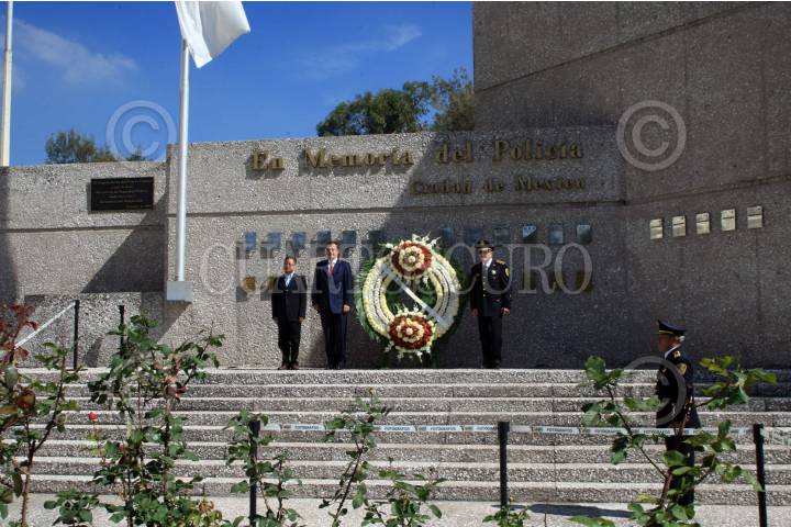 MÉXICO, D.F., 28JUNIO2010.- Eduardo Santillán, Delegado de Alvaro Obregon, junto a Marcelo Ebrard Casaubon, Jefe de Gobierno Capitalino y Manuel Mondragon y Kalb, Secretario de Seguridad Publica, montaron una guardia de honor en el altar a la Memoria del Policia de Ciudad de México. FOTO: CUARTOSCURO.COM