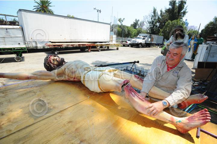MÉXICO, D.F., 30MARZO2015.- Mantenimiento a las figuras monumentales del Viacrucis que recorrerán las calles cercanas a la delegación Venustiano Carranza con motivo de la Semana Santa. FOTO: ARMANDO MONROY /CUARTOSCURO.COM