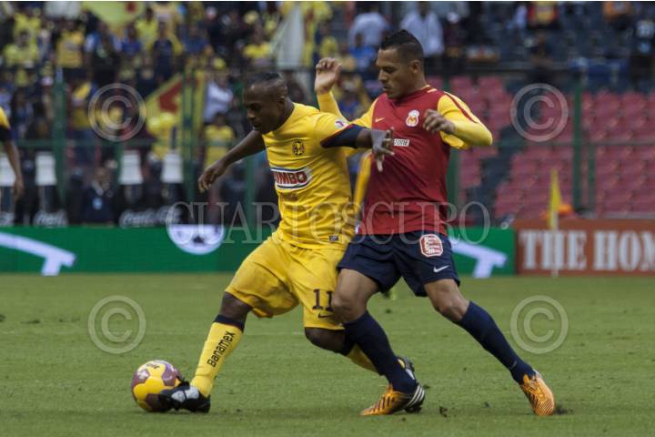 MÉXICO, D.F., 17NOVIEMBRE2012.- Paul Aguilar de las Águilas del América durante el partido en contra del Monarcas Morelia, encuentro de octavos de final del Torneo Apertura 2012 que se realizó en el estadio Azteca; encuentro que ganaron las Águilas en marcador global 3 goles a 2. FOTO: RODOLFO ANGULO /CUARTOSCURO.COM