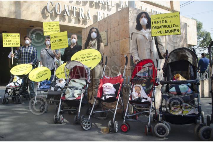 MÉXICO, D.F., 22OCTUBRE2012.- Integrantes de varias organizaciones civiles , como MÉXICO Red por los Derechos de la Infancia en México, Bicicletas para ciudades + humanas, Fundación Tlaloc Trabajando por un México Sustentable y el Poder del Consumidor se manifestaron en la Comisión Federal para la Protección contra Riesgos Sanitarios(Cofepris) para exigir que se actualicen urgentemente las normas oficiales de la salud ambiental cuyo rezago se traduce en la muerte prematura de 14 mil 700 mexicanos, donde los niños son los más afectados. FOTO: SANDRA PÉREZ/CUARTOSCURO.COM