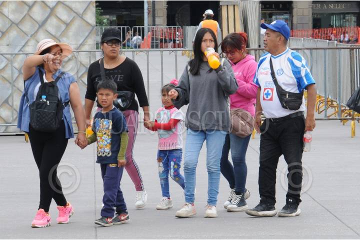 CIUDAD DE MÉXICO, 03JULIO2024. - Una familia camina por el Zócalo mientras uno de ellos bebe una bebida azucarada. Según el reporte de El Poder del Consumidor, estos productos pueden causar diabetes y enfermedades cardiovasculares. FOTO: DANIEL AUGUSTO /CUARTOSCURO.COM