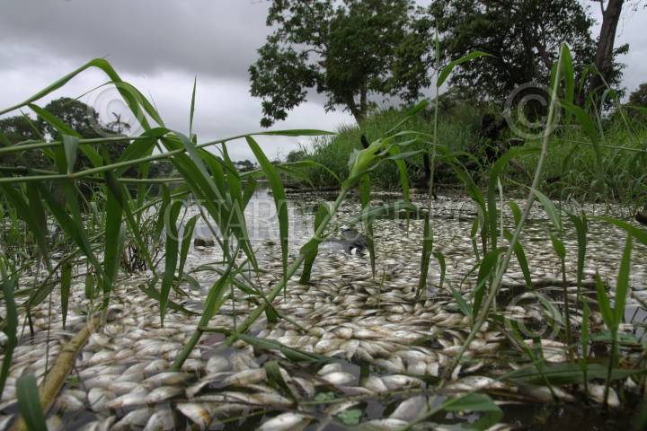 VILLAHERMOSA, TABASCO, 03FEBRERO2011.- Cientos de peces conocidos como Arenques flotan muertos sobre la superficie de las aguas de la laguna de las Ilusiones. En un comunicado ofrecido por el profesor investigador Antonio del Angel Flores, quien labora de tiempo completo en los laboratorios de Biología de la UJAT expresa que dicha mortandad es causada por el cambio climático y que lo anterior tendrá más consecuencias. FOTO: MARCO POLO GUZMÁN HERNÁNDEZ/CUARTOSCURO.COM