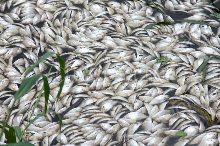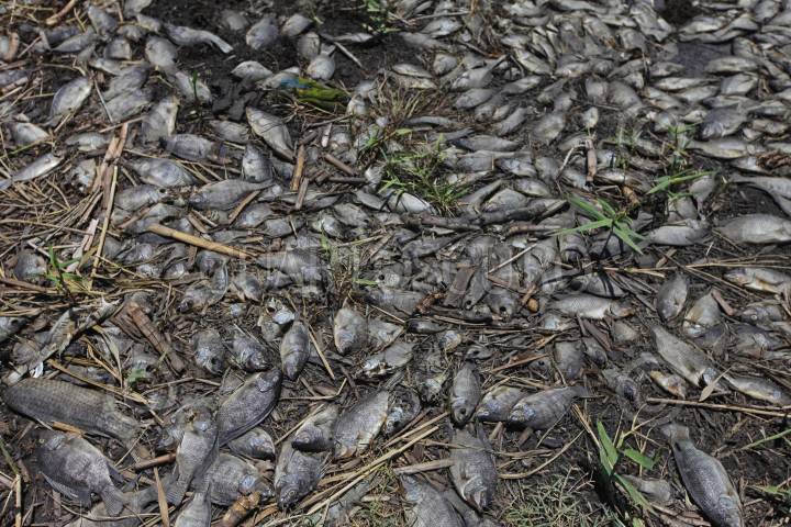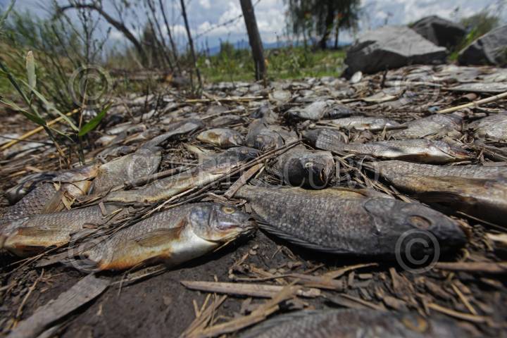 Mortandad de peces debido a contaminación del agua en la presa Plan de Ayala en Puente de Ixtla Morelos.
