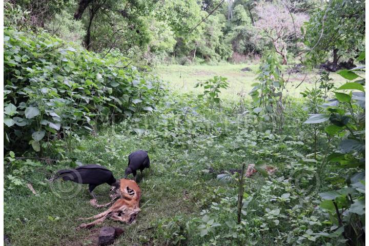 Varios cadáveres de reses son devorados por zopilotes en la Reserva del Texcal.