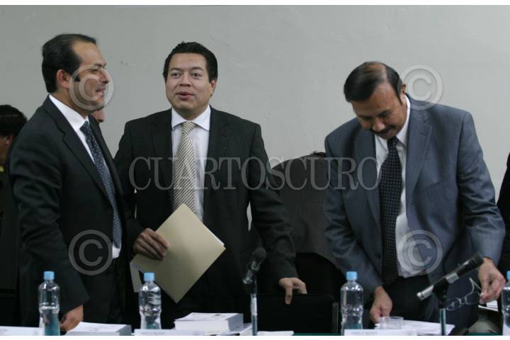 MÉXICO, D.F., 06FEBRERO2008.- Los asambleístas Daniel Ramírez del Valle, Mario Delgado, Secretario de Finanzas del DF y José Luis Morua, durante la comparecencia del encargado de las finanzas del distrito federal en la sede de la ALDF. FOTO: MOISÉS PABLO/CUARTOSCURO.COM