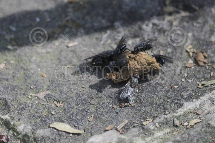 GUADALAJARA, JALISCO, 12JULIO2016.- Dos moscas durante la reproducción, estas son de los insectos que durante su proceso de vida pasan por un huevo, después una larva, sucesivamente le sigue una pupa y por ultimo se convierten en adultos. FOTO : FERNANDO CARRANZA GARCIA / CUARTOSCURO.COM