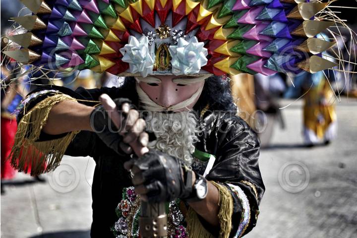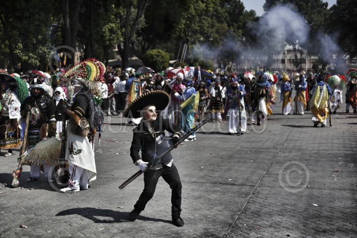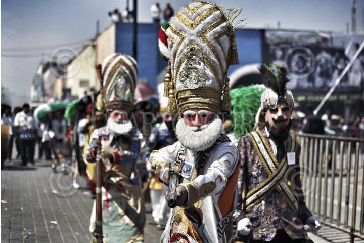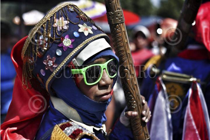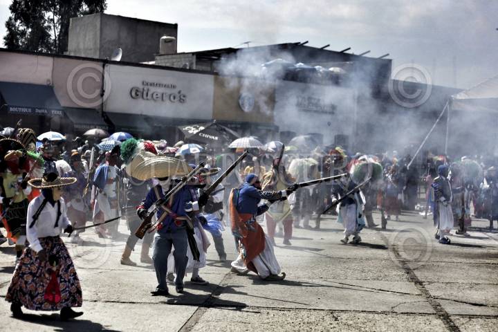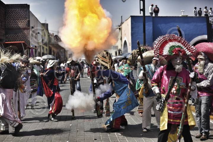 SAN PEDRO CHOLULA, PUEBLA, 17FEBRERO2013.- La tarde de este domingo se realizó el tradicional Carnaval de Cholula, en donde pobladores de la región realizan la danza de moros y cristianos, así como una representación de barrios mexicanos en contra de franceses, en donde los danzantes se enfrentan en una cruenta batalla con mosquetones llenos de pólvora. FOTO: FÉLIX MÁRQUEZ /CUARTOSCURO.COM