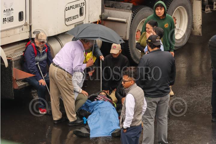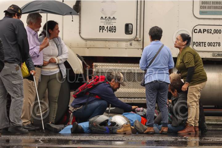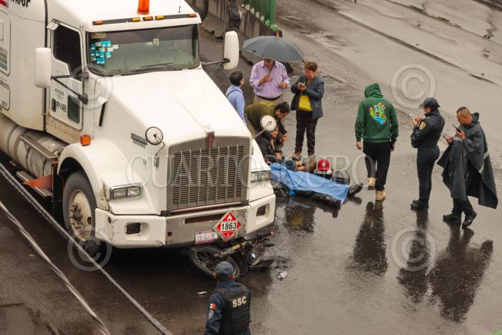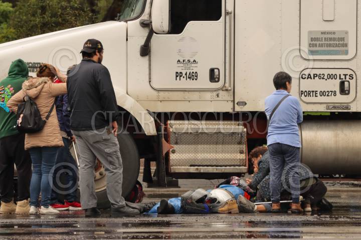 TULTITLÁN, ESTADO DE MÉXICO, 09MAYO2025.- Murió una mujer al ser arrollada por un trailer de doble remolque cuando se trasladaba eb su motocicleta en avenida Recursos Hidráulico. Su quien viajaba con ella logró ponerse a salvo antes de ser embestidos. FOTO: ROGELIO MORALES/CUARTOSCURO.COM