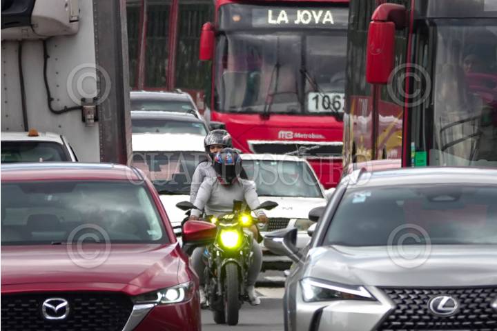 CIUDAD DE MÉXICO, 23 de julio de 2025.- Entre autos, camiones y transporte público, un motociclista apenas sobresale con el destello de una luz amarilla. En este contexto, la Organización Panamericana de la Salud recomendó a los gobiernos latinoamericanos imponer un impuesto adicional a estos vehículos debido al riesgo que representan, así como declararlos un producto nocivo. FOTO: ROGELIO MORALES /CUARTOSCURO.COM