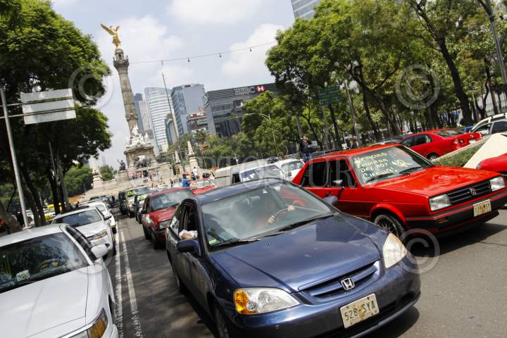 MÉXICO, D.F., 21JUNIO2014.- Cientos de atomovilistas marcharon desde el Ángel de la Independencia al Hemiciclo a Juarez en protesta por las modificaciones al programa Hoy No Circula, ya que perjudica a las personas que tienen menos recursos al no poder adquirir un auto de modelo reciente. FOTO: RODOLFO ANGULO /CUARTOSCURO.COM