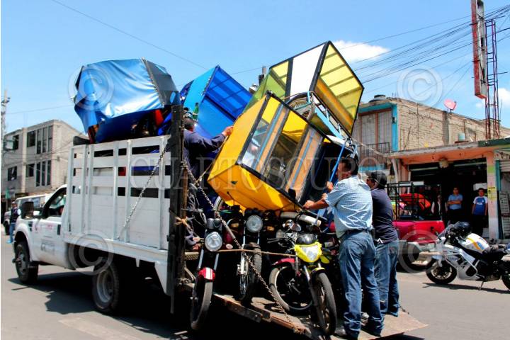 CIUDAD DE MÉXICO, 03AGOSTO2017.- Un total de 39 unidades de mototaxi que no contaban con regularización oficial por parte de la autoridad fueron remitidas al corralón tras el operativo en San Gregorio Atlapulco. FOTO: INVEA /CUARTOSCURO.COM