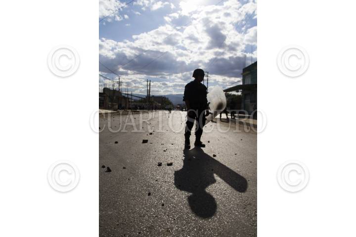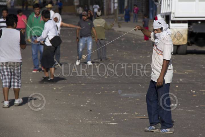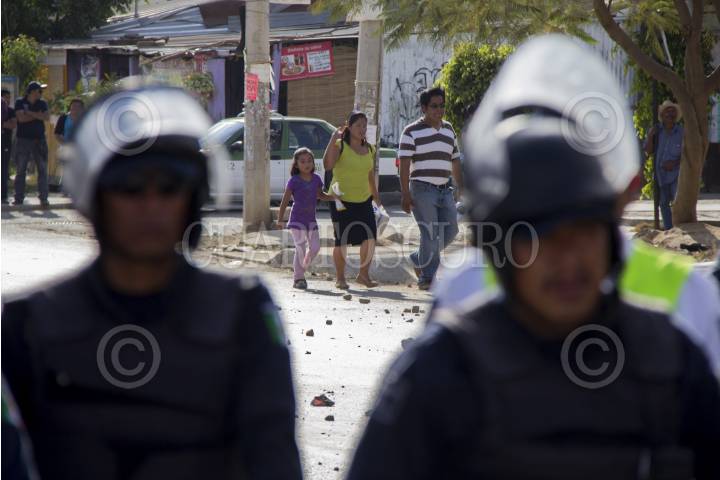 OAXACA, OAXACA, 12ENERO2014.- Las organizaciones de moto taxistas, agencia Trinidad de Viguera y agencia de Pueblo Nuevo, se enfrentaron hasta en 3 ocasiones, teniendo como resultado una veintena de heridos. El conflicto se debió a que ambas organizaciones se acusan mutuamente de invasión de rutas, por lo que policía municipal realizaron varios disparos de arma de fuego para dispersar a los manifestantes. FOTO: ARTURO PÉREZ ALFONSO/CUARTOSCURO.COM