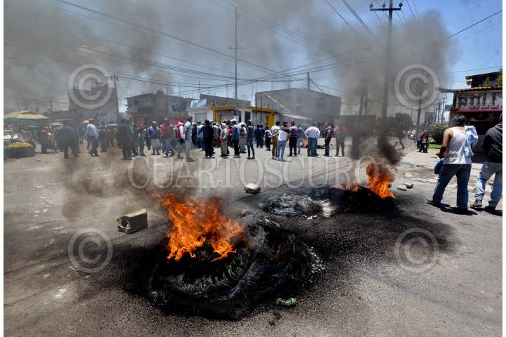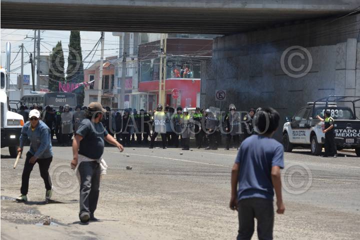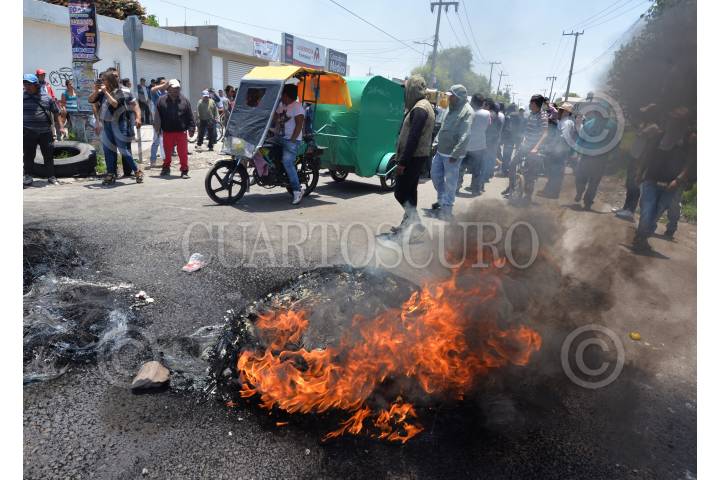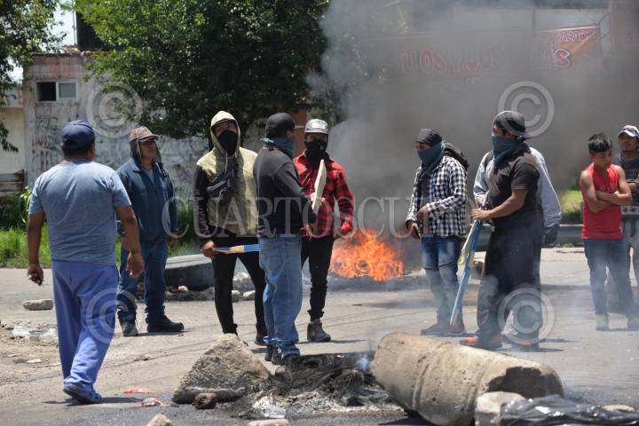 TOLUCA, ESTADO DE MÉXICO, 15MAYO2018.- Mototaxistas y vecinos del Cerrillo Vista Hermosa, en Toluca, bloquearon la avenida principal de esta delegación con piedras y neumáticos quemados, exigiendo les fueran regresadas las unidades que fueron retenidas en un operativo de movilidad realizado por parte del Ayuntamiento de Toluca, se dio un pequeño enfrentamiento con policías de la Secretaria de Seguridad, después de tres giras de bloque las unidades les fueron regresadas. FOTO: ARTEMIO GUERRA BAZ /CUARTOSCURO.COM