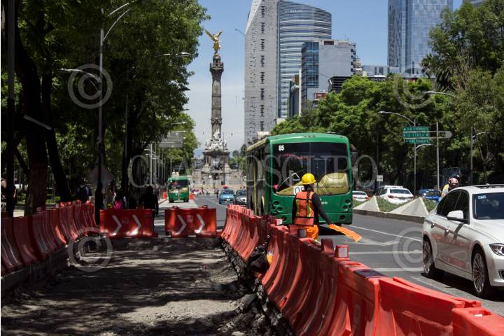 CIUDAD DE MÉXICO, 19JUNIO2017.- Tras cumplirse una semana de la suspensión de la construcción de la Línea 7 del Metrobús sobre Paseo de la Reforma, se observa dentro de los socavones inconclusos agua estancada, así como basura. Según cifras oficiales por cada día de paro de labores se han perdido alrededor de 2.5 millones de pesos. FOTO: GALO CAÑAS /CUARTOSCURO.COM