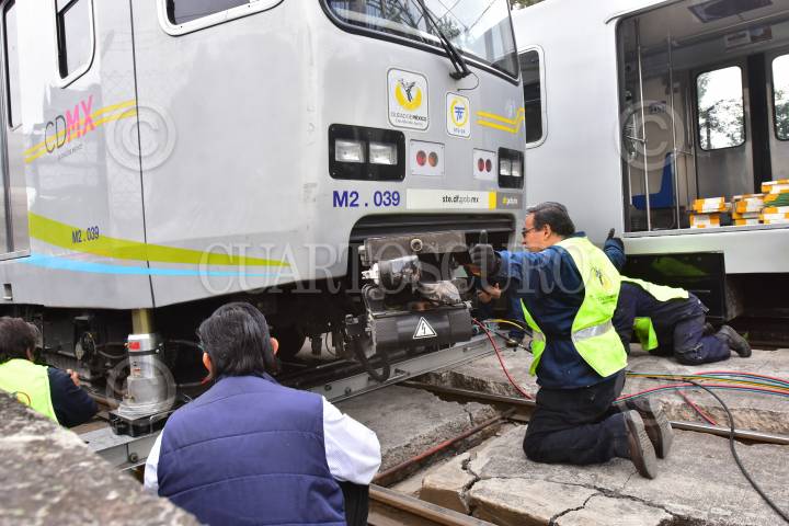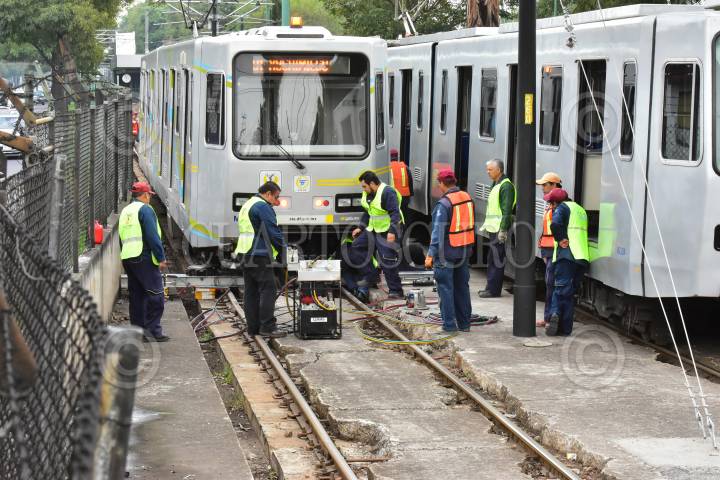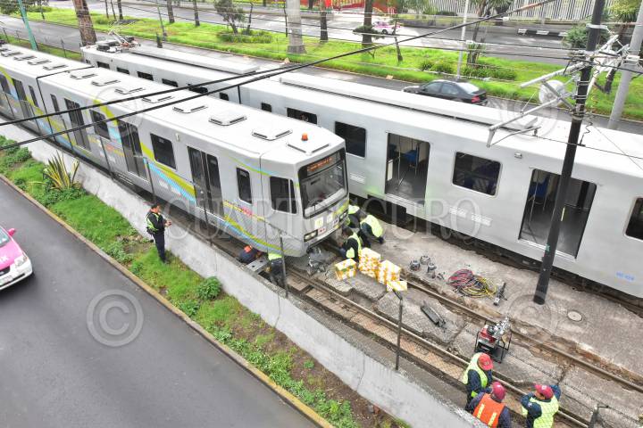 CIUDAD DE MÉXICO, 25JUNIO2017.- El sistema de transporte Tren Ligero sufrió un descarrilamiento en las inmediaciones de la estación Textitlan, sin reportarse lesionados en el percance. Técnicos del transporte acudieron a resolver el incidente. FOTO: ARMANDO MONROY /CUARTOSCURO.COM