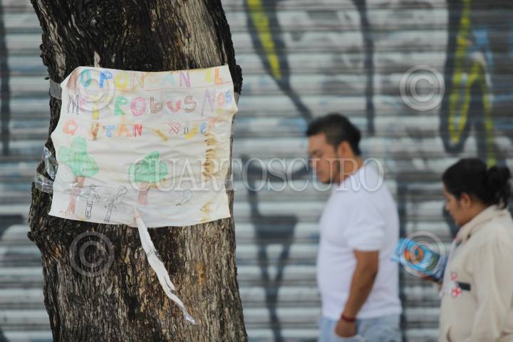 CIUDAD DE MÉXICO, 04JULIO2017.- Un contingente de vecinos se manifestaron en contra de la construcción de la Línea 7 del metrobús, sobre calzada de los Misterios debido a la tala desmedida de árboles que se efectuaría sobre dicha avenida y que atraería conflictos viales y de flora y fauna de la misma. FOTO: GALO CAÑAS /CUARTOSCURO.COM
