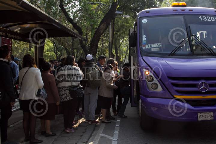 CIUDAD DE MÉXICO, 06MARZO2018.- Usuarios del transporte público realizaron largas filas a las afueras del metro auditorio, y a un costado de la última estación del metrobús línea 7 del mismo nombre, para poder abordar los camiones con dirección a Santa Fe. Desde el día de ayer, con la entrada en operación de la nueva línea de metrobús los usuarios se han quejado de los retrasos y el aumento en el tiempo de espera para poder abordar las unidades concesionadas, así como el doble gasto que muchos realizan para llegar a sus lugares de trabajo. FOTO: GALO CAÑAS /CUARTOSCURO.COM