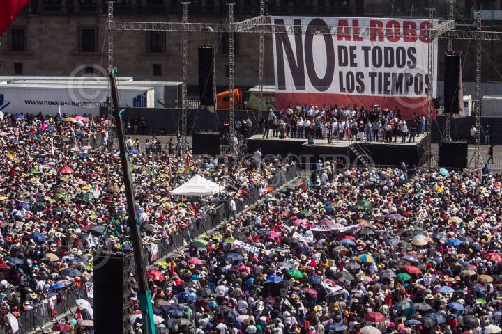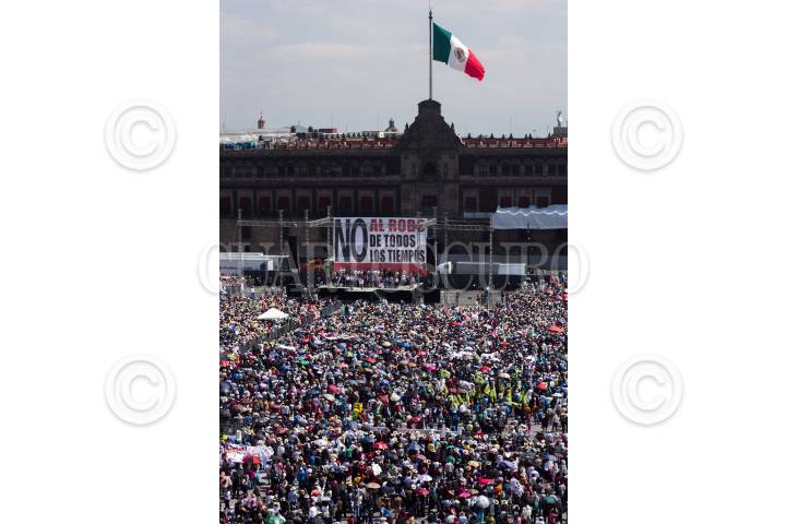 MÉXICO, D.F., 27OCTUBRE2013.- Miles de simpatizantes de Andrés Manuel López Obrador, Presidente del Consejo Nacional del Movimiento Regeneración Nacional (MORENA) se reunieron en el mitin que encabezo en el Zócalo Capitalino por la Defensa del Petróleo y de la Economía Popular. FOTO: ENRIQUE ORDÓÑEZ /CUARTOSCURO.COM