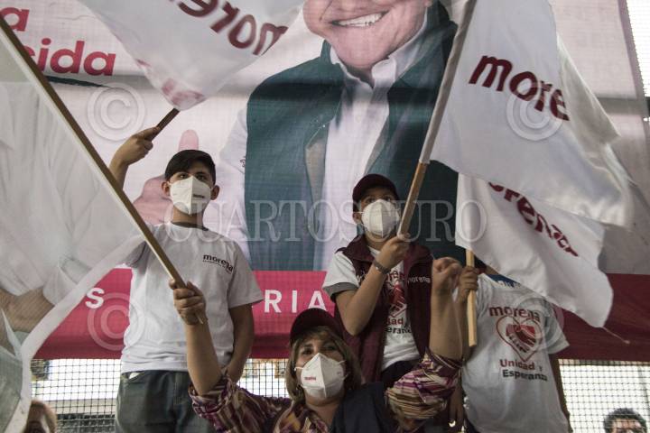 Simpatizantes durante mitin de David Monreal, candidato a la gubernatura de Zacatecas.