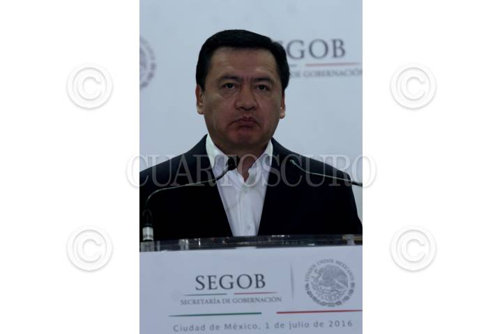CIUDAD DE MÉXICO, 01JULIO2016.- Miguel Ángel Osorio Chong, secretario de Gobernación, ofreció un mensaje a medios en donde adviritió que no cederán ante la presión del movimiento magisterial y mencionó que tomarán cartas en el asunto pues no están dispuestos a permitir más bloqueos carreteros. Sin responder ninguna pregunta abandonó el Salón Juárez de la Secretaría de Gobernación. FOTO: MARÍA JOSÉ MARTÍNEZ /CUARTOSCURO.COM