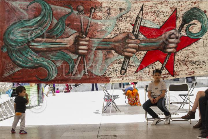 CIUDAD DE MÉXICO, 03JULIO2016.- En la explanada de Bellas Artes se instalaron varias carpas de apoyo al movimiento magisterial que buscan abrogar la Reforma Educativa, con varias actividades culturales e informativas mostraron su simpatía con los profesores de la Coordinadora Nacional de Trabajadores de la Educación quienes mantienen su lucha en varios estados del país. FOTO: MOISÉS PABLO /CUARTOSCURO.COM