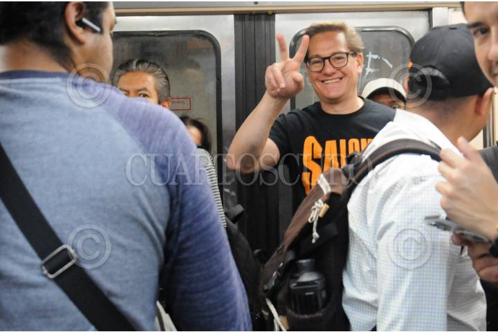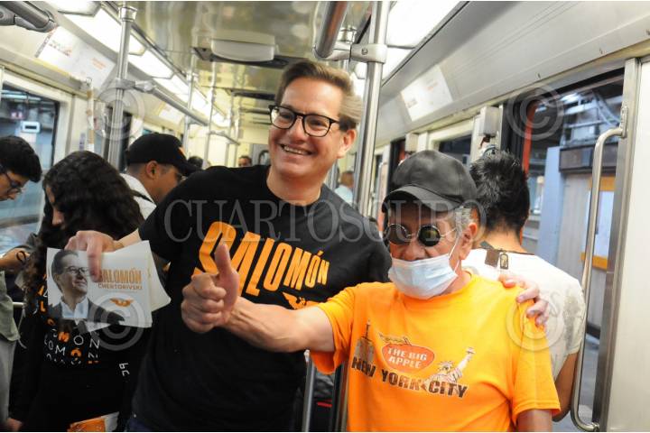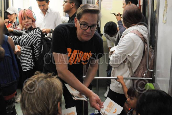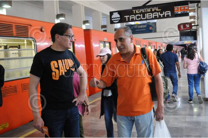CIUDAD DE MÉXICO, 06MARZO2024.- Salomón Chertorivski, candidato de MC a la jefatura de gobierno, se subió al metro de la capital para dialogar con usuarios de este transporte. FOTO: DANIEL AUGUSTO /CUARTOSCURO.COM