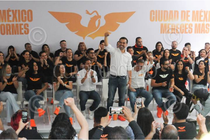 CIUDAD DE MÉXICO, 28MARZO2024.- Los candidatos a la presidencia y jefatura de gobierno por parte de MC, Jorge Álvarez Maynez y Salomón Chertorivski, entregaron las constancias a los candidatos de su partido que iniciarán sus campañas este domingo para diputaciones locales y alcaldías. FOTO: DANIEL AUGUSTO /CUARTOSCURO.COM