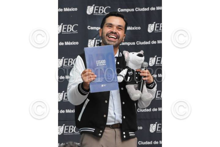 CIUDAD DE MÉXICO, 08MAYO2024. - Al término de su diálogo con los estudiantes, Álvarez Maynez recibió la chamarra, la figura de la mascota y el libro que retrata los 75 años de la EBC. FOTO: DANIEL AUGUSTO /CUARTOSCURO.COM