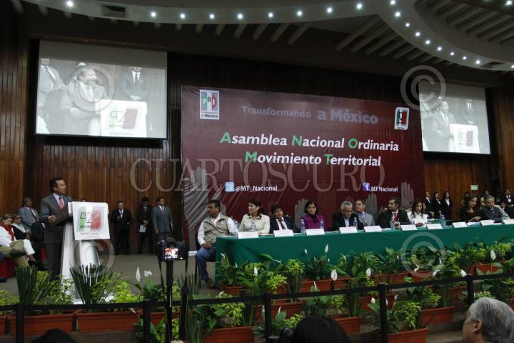 MÉXICO, D.F., 14AGOSTO2015.- Integrantes del comité del Movimiento Territorial del PRI, manifiestan su apoyo a Manlio Fabio Beltrones y Carolina Monroy del Mazo, aspirantes a la dirigencia nacional del PRI, durante un evento en el auditorio Plutarco Elías Calles de la sede nacional del partido tricolor. FOTO: DIEGO SIMÓN SÁNCHEZ /CUARTOSCURO.COM