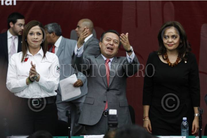 MÉXICO, D.F., 15FEBRERO2014.- La diputada Sue Ellen Bernal, Cesar Camacho, presidente nacional del Partido Revolucionario Institucional y la senadora Ana Lilia Herrera durante la Asamblea Nacional Ordinaria Movimiento Territorial que se realizó en el CEN del PRI. FOTO: RODOLFO ANGULO /CUARTOSCURO.COM