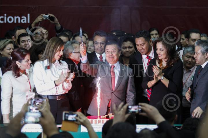 MÉXICO, D.F., 15FEBRERO2014.- Cesar Camacho, presidente nacional del Partido Revolucionario Institucional, festejo su cumpleaños al termino de la Asamblea Nacional Ordinaria Movimiento Territorial que se realizó en el CEN del PRI. FOTO: RODOLFO ANGULO /CUARTOSCURO.COM