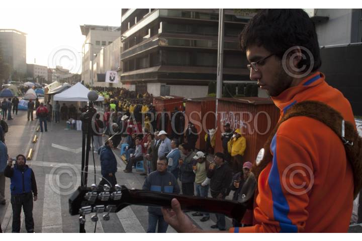 MÉXICO D.F., 26JULIO2012.- Integrantes del Movimiento #yosoy132 y miembros del Sindicato Mexicano de Electricistas entre otros, acamparon la noche de ayer en las inmediaciones de Televisa, esto en protesta por lo que consideran ellos el apoyo de la televisora a Enrique Peña Nieto en los pasados comicios presidenciales del 1 de Julio. En la esuina de Dr. Lucio y Avenida Chapultepec se intsaló un templete donde diversos grupo de rock se han presentado; además el inmueble se encuantra custodiado por decenas de uniformados de la Secreatria de Seguridad Pública. FOTO: FRANCISCO RODRÍGUEZ /CUARTOSCURO.COM