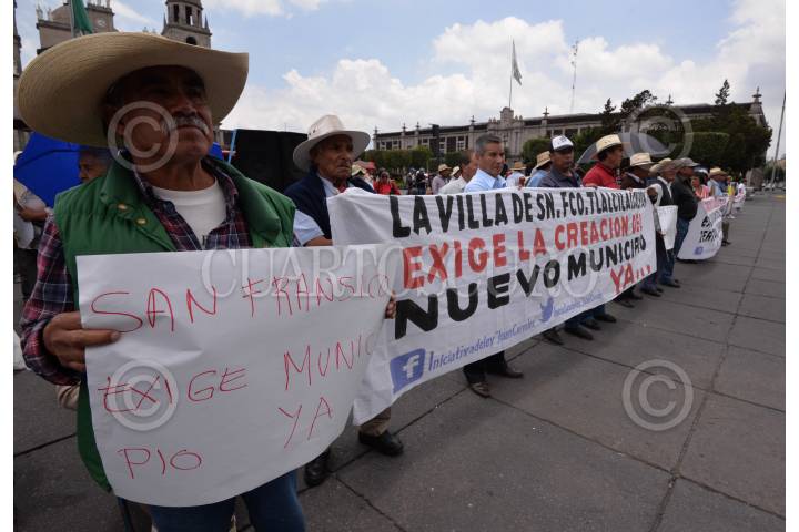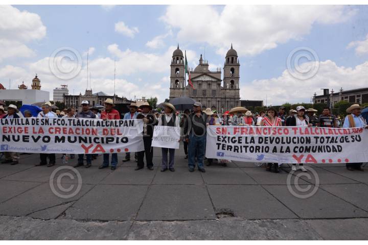 TOLUCA, ESTADO DE MÉXICO, 11JUNIO2018.- Alrededor de 200 Habitantes de San Francisco Tlalcilalcalpan, en Almoloya de Juárez, se manifestaron en Palacio de Gobierno para pedir el reconocimiento de este poblado como nuevo municipio en el Estado se México. FOTO: ARTEMIO GUERRA BAZ /CUARTOSCURO.COM