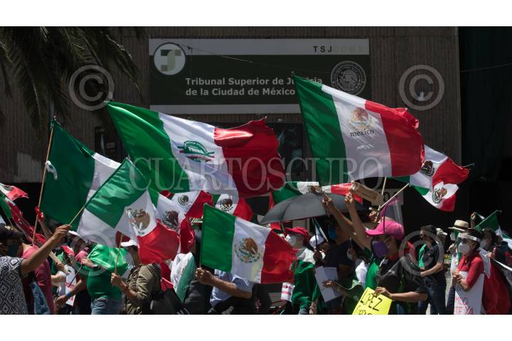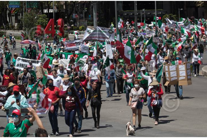 Integrantes del Frente Nacional Antiamlo (FRENA) marcharon del Monumento a la Revolución hacia el Zócalo para exigir la renuncia del presidente Andrés Manuel López Obrador