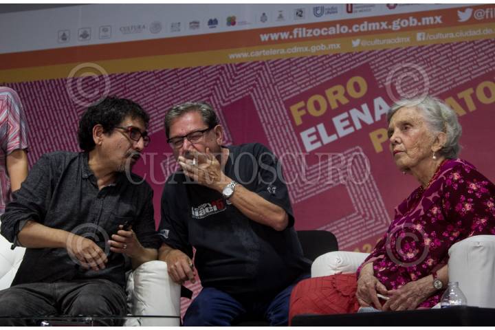 CIUDAD DE MÉXICO, 13OCTUBRE2018.- el escritor y periodista Fabrizio Mejía junto con la escritora Elena Poniatowska encabezaron la tertulia “El 68 en México”. Charla que tuvo como fin exponer todos los movimientos sociales durante en ese año, así como explicar las relaciones de poder y hechos que provocaron el trágico 02 de octubre. Al final del evento, el propuesto como director del Fondo de Cultura Económica para la siguiente administración, Paco Ignacio Taibo II, subió al escenario para conversar acerca de su plan de acción en el siguiente gobierno. FOTO: GALO CAÑAS /CUARTOSCURO.COM