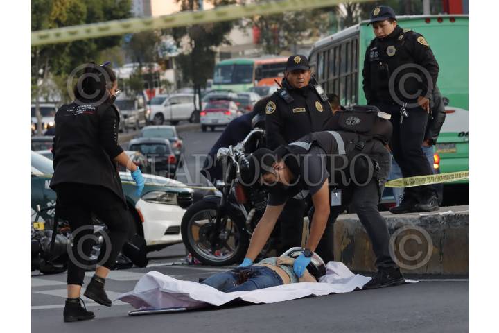 CIUDAD DE MÉXICO, 22MARZO2024.- Un motociclista falleció al derrapar en su motoneta y ser atropellado por un auto que se dio a la fuga en la lateral de circuito interior y Salvador Días Mirón en la colonia agricultura de la alcaldía Miguel Hidalgo FOTO: ROGELIO MORALES/CUARTOSCURO.COM