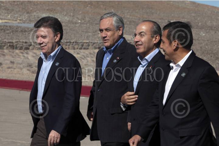 SANTIAGO DE CHILE, CHILE, 06FEBRERO2024.- El ex presidente de Chile, Sebastián Piñera Echenique (2010-2014 y 2018-2022), falleció en un accidente aéreo tras estrellarse un helicóptero privado en que viajaba en las cercanías del Lago Ranco. En la imagen, el ex presidente durante su visita a México en junio 2012 en compañía del entonces presidente de México Felipe Calderón y el ex mandatario Ollanta Humala, presidente de Perú durante la IV Cumbre de la Alianza del Pacífico en Paranal, Chile. FOTO: ALFREDO GUERRERO/ ARCHIVO/CUARTOSCURO.COM
