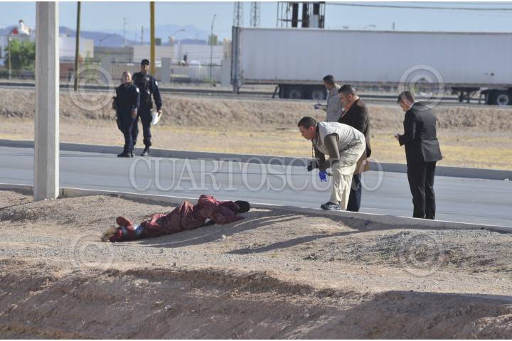 CIUDAD JUAREZ, CHIHUAHUA, 15ABRIL2014.- Peritos de la procuraduria del estado realizan los peritajes donde se localizó un hombre sin vida amaniatado sobre un terreno baldío en el cruce de las calles Yepomera y avenida Talamás Camandari en el Parque Industrial Juárez. FOTO: NACHO RUIZ /CUARTOSCURO.COM
