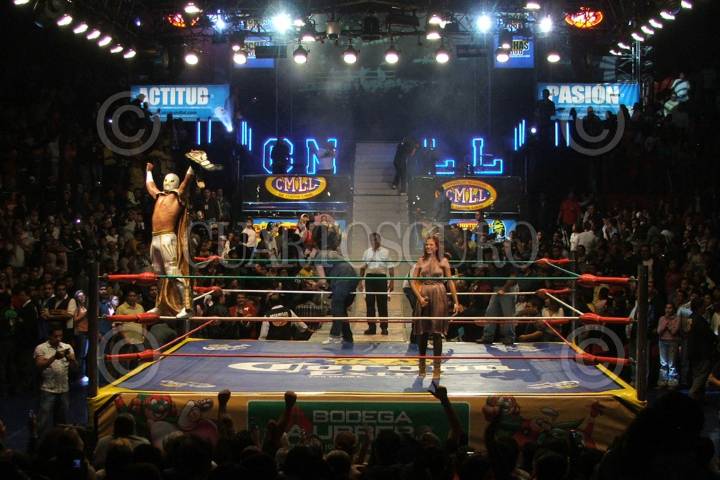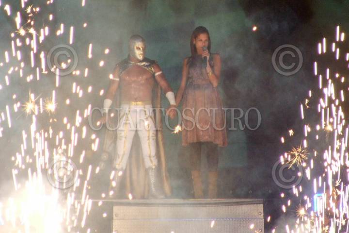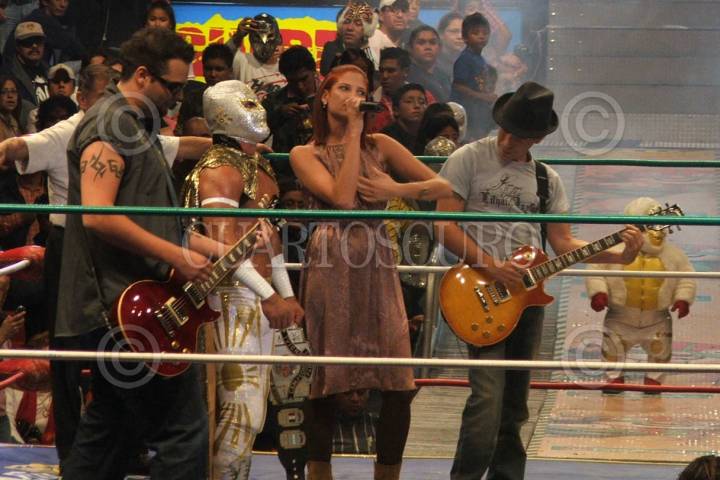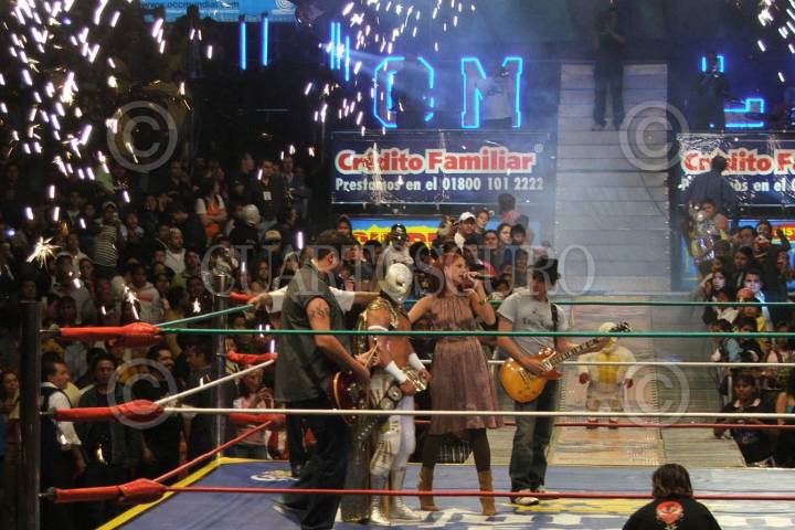 MÉXICO, D.F. 17NOVIEMBRE2006.- El grupo de pop La Quinta estación presentó en la arena México su nuevo video titulado "Me Muero" donde participa en la filmación el luchador Mistico. FOTO: SAÚL LÓPEZ/CUARTOSCURO.COM