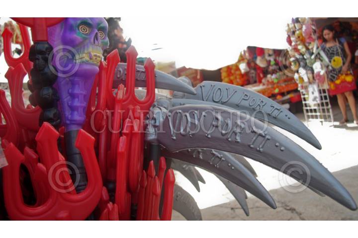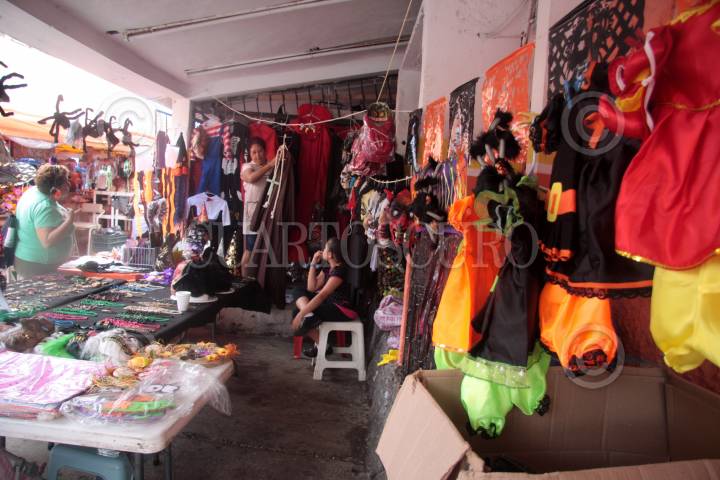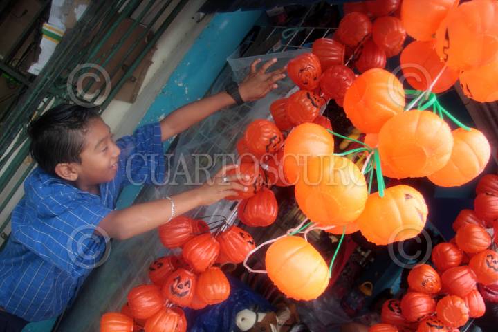 CANCÚN, QUINTANA ROO, 25OCTUBRE2008.- Esta tarde iniciaron las ventas para los festejos del Día de Muertos y Halloween en un popular mercado de este destino turistico. Lo contrastante de esta situación es que las tradiciones nacionales se van perdiendo para ganar terreno los festejos de norteamerica, y en las ventas se refleja al sobresalir la demanda del día de brujas. FOTO: MARCO POLO GUZMÁN HERNÁNDEZ/CUARTOSCURO.COM