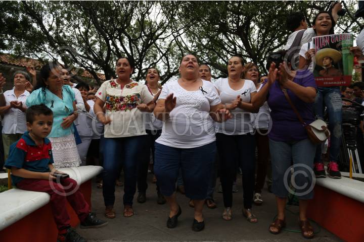 PARÁCUARO, MICHOACÁN, 29AGOST02016.- Cientos de personas se reunieron frente al monumento ubicado en la plaza principal, para realizar una marcha que recorrió parte de la cabecera municipal, en homenaje al recién fallecido Juan Gabriel" (Alberto Aguilera). FOTO: ALAN ORTEGA /CUARTOSCURO.COM
