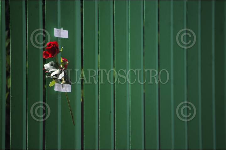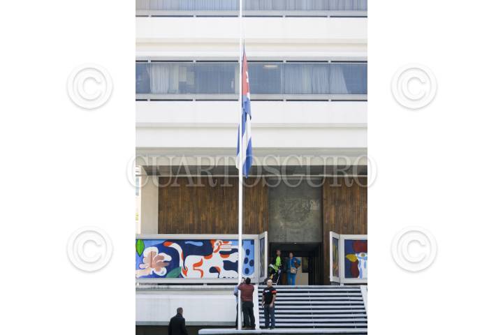 CIUDAD DE MÉXICO, 26NOVIEMBRE2016.- Cubanos residentes en México colocaron flores en las rejas de la embajada de Cuba luego de la muerte del comandante Fidel Castro la noche de ayer, según lo informado por su hermando Raúl Castro. Cubanos de la embajada izaron la bandera a media asta, el gobierno cubano decretó 9 días de luto por el fallecimiento del líder cubano. FOTO: DIEGO SIMÓN SÁNCHEZ /CUARTOSCURO.COM
