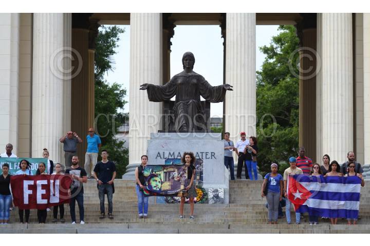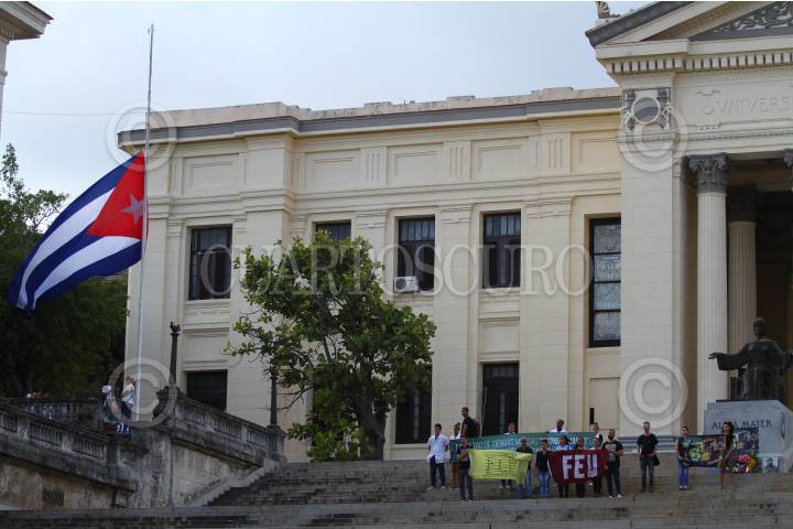 LA HABANA, CUBA, 27NOVIEMBRE2016.- Estudiantes de diferentes facultades de la Universidad de la Habana, durante todo el día realizan periódicamente guardias de honor en memoria del comandante Fidel Castro Ruz, líder de la revolución cubana, quien falleció la noche del viernes a la edad de 90 años. FOTO: ADOLFO VLADIMIR /CUARTOSCURO.COM