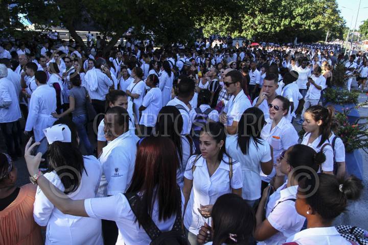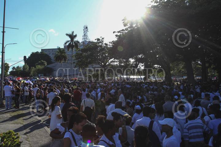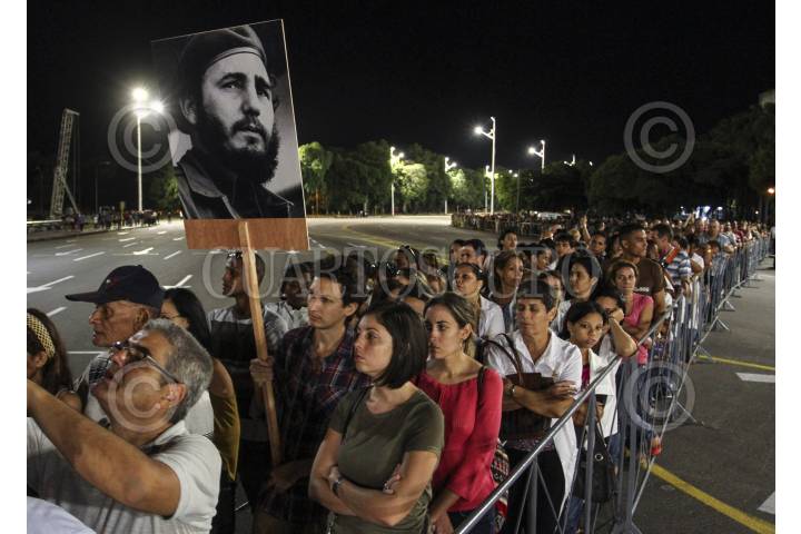 LA HABANA, CUBA, 28NOVIEMBRE2016.- Miles de personas, de escuelas, facultades y centros de trabajo, mantienen largas filas desde las 9 de la mañana en la Plaza de la Revolución, para ingresar y rendir homenaje a Fidel Castro, comandante y líder de la Revolución Cuba. Mañana por la noche se realizará un homenaje masivo en la misma plaza antes de partir en caravana por varias provincias hasta llegar a Santiago de Cuba. FOTO: ADOLFO VLADIMIR /CUARTOSCURO.COM