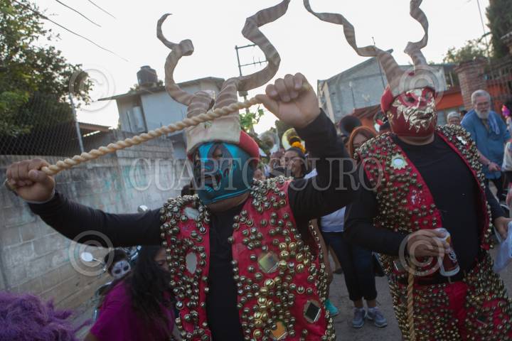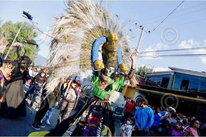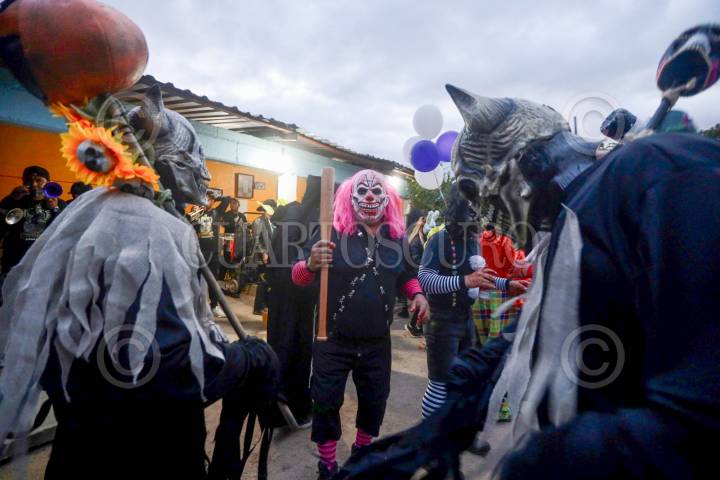 SOLEDAD ETLA, OAXACA, 01NOVIEMBRE2023.- Como es tradición, en Soledad Etla, municipio ubicado a 17 kilómetros de la capital de Oaxaca, pobladores celebraron su muerteada. Acompañados de bandas de música, los participantes recorren las calles y casas de la población, mostrando además su creatividad, pues elaboran los disfraces que portan. FOTO: CAROLINA JIMÉNEZ/CUARTOSCURO.COM