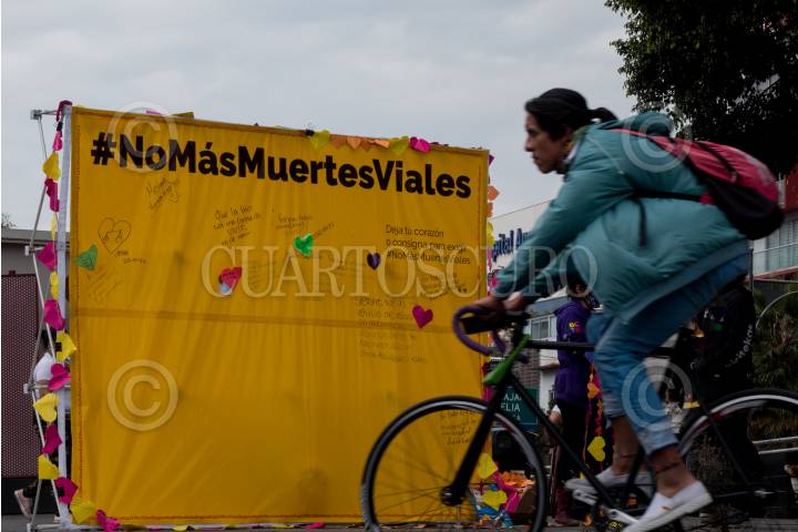 La Coalición Movilidad Segura realizó el mural "No Más Muerte Viales" en el cruce de Insurgentes Sur y Viaducto Miguel Alemán para exigir justicia por los atropellamientos de Gabriela Reyes y Braulio Escobar.