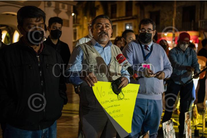 Periodistas de Veracruz se sumaron a la jornada nacional de protestas por los homicidios de los colegas Lourdes Maldonado, Margarito Martínez y José Luis Gamboa. En la imagen Rodolfo Herrera, presidente de la Asociación de Periodistas de Veracruz, durante el pronunciamiento.