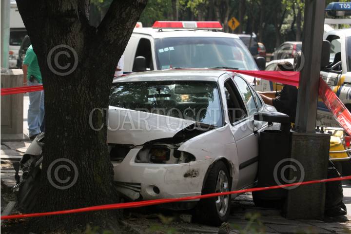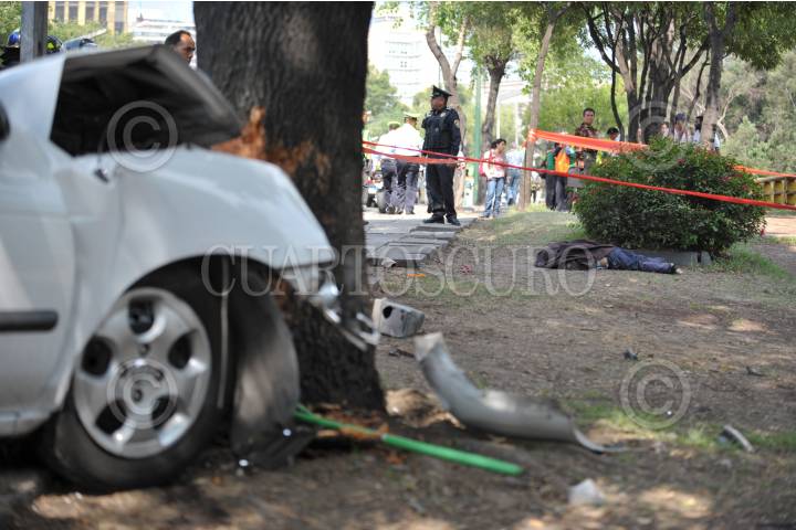 MÉXICO, D.F., 15JUNIO2010.- Una trabajadora de limpia de la ciudad, murió al ser atropellada por un vehiculo Sentra color blanco cuando este a su ves fue impactado por una camioneta blanca que se le cerro en la avenida Reforma a la altura del Circuito Interior. FOTO: ENRIQUE ORDÓÑEZ/CUARTOSCURO.COM