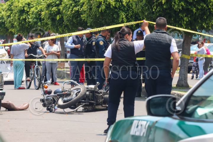 CIUDAD DE MÉXICO, 03SEPTIEMBRE2025.- Un hombre y una mujer derraparon mientras viajaban en motocicleta; el masculino falleció a causa de la caída. De acuerdo con autoridades presentes, ambos eran policías auxiliares. Los hechos ocurrieron en Viaducto y la calle Sindicalismo, en la colonia Escandón, alcaldía Miguel Hidalgo. FOTO: ROGELIO MORALES / CUARTOSCURO.COM