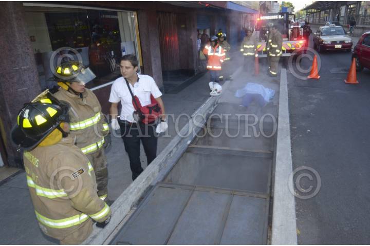 MÉXICO, D.F., 25MAYO2015.- Una mufa estalló sobre Av. Cuauhtémoc frente al número 10, lo que provocó una salida explosiva de vapor de agua. El saldo fue de un muerto, Javier Osorio Aguilar de 64 años, al parecer de oficio voceador, quien cayó dentro de la mufa. FOTO: ARMANDO MONROY /CUARTOSCURO.COM
